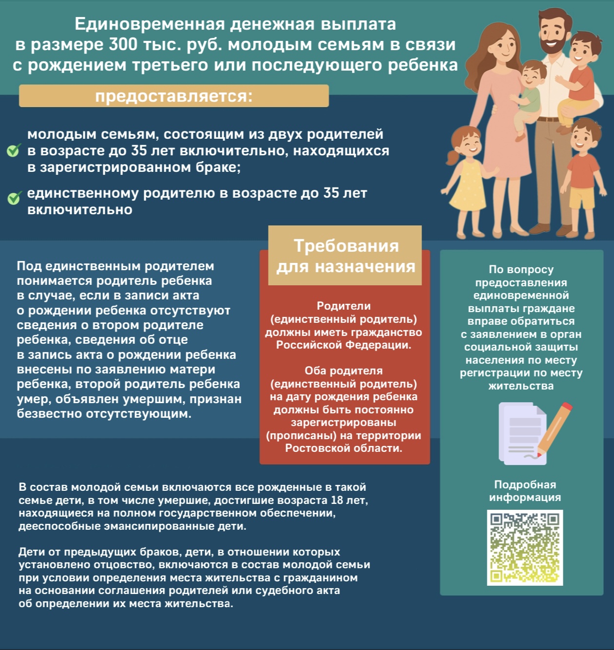 Единовременная денежная выплата в размере 300 тыс. руб. молодым семьям в связи с рождением третьего или последующего ребенка